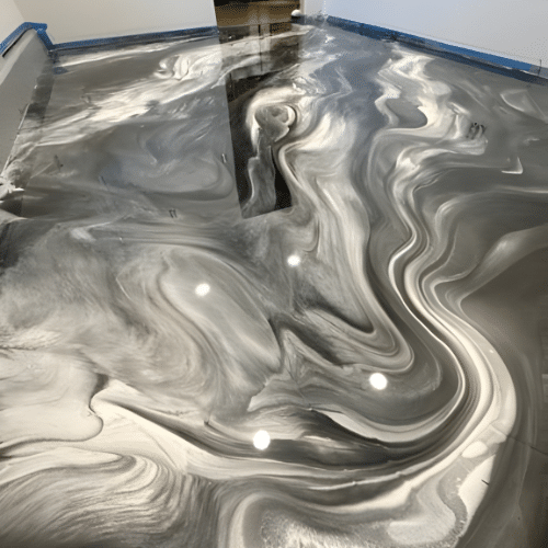 We cover walls, baseboards, and any nearby objects to protect them from epoxy.