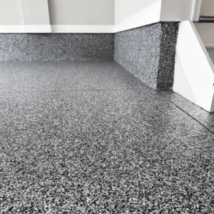 We apply the epoxy base coat, followed by color and top coats, ensuring a smooth and durable surface.